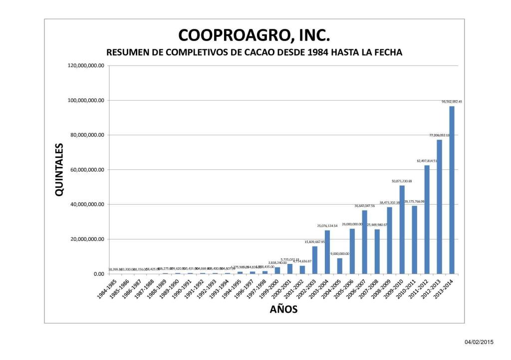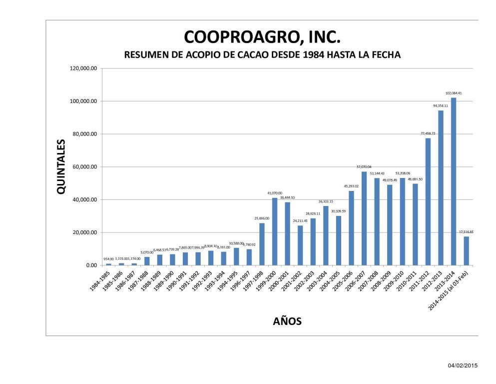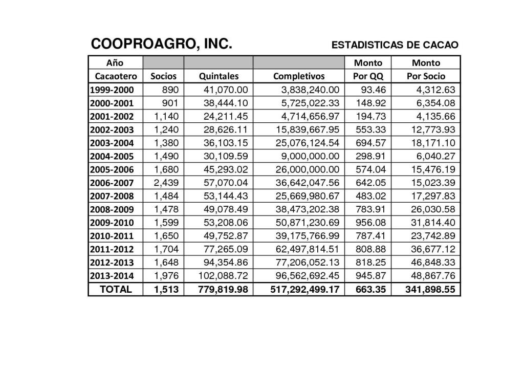 A la derecha mostramos el cuadro de Acopio de Cacao desde el inicio de nuestra organizacion.
